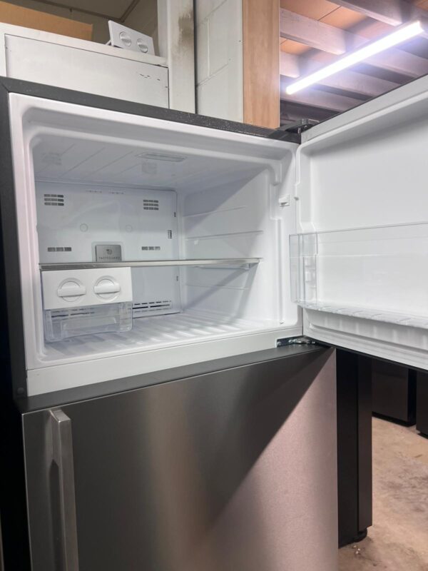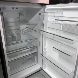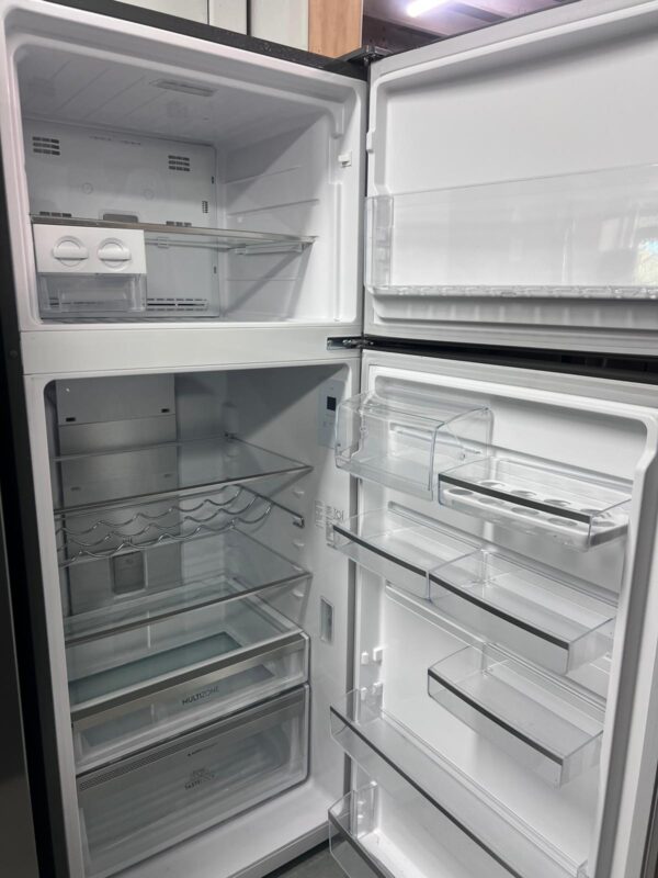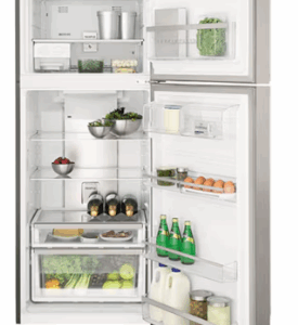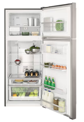 FEATURES: Top Mount Design, Frost Free Cooling, Electronic Internal Touch Controls, Bar Handle Design, Left and Right Door Hinge Opening, Telescopic Deli-Compartment Runner, Full-Width Food Compartment, Deep Bottle Bin (x1), Shallow Bin (x1), Twist Ice & Serve (x2), Full-Width Freezer Door Bin (x1), Fridge and Freezer Door Alarm, Removable Seals, R600a Refrigerant