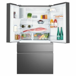 This refrigerator uses advanced cooling systems to maintain stable temperatures. As a result, food stays fresher for longer.