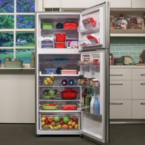 With a total capacity of 443L, this fridge provides ample room for fresh and frozen foods. Moreover, the top mount layout ensures easy access to daily essentials.