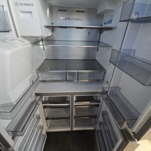 The Hisense HRCD585SW French Door Refrigerator is designed for modern households seeking both style and functionality. Not only does it offer a spacious 585L capacity, but it also features a sleek PureFlat stainless steel finish.