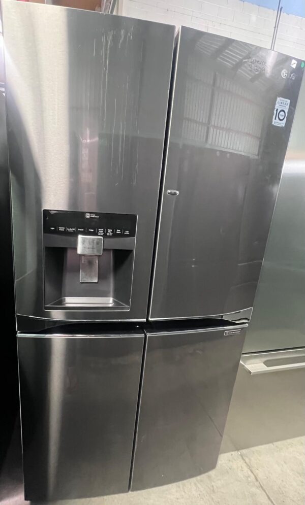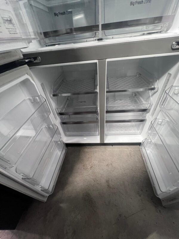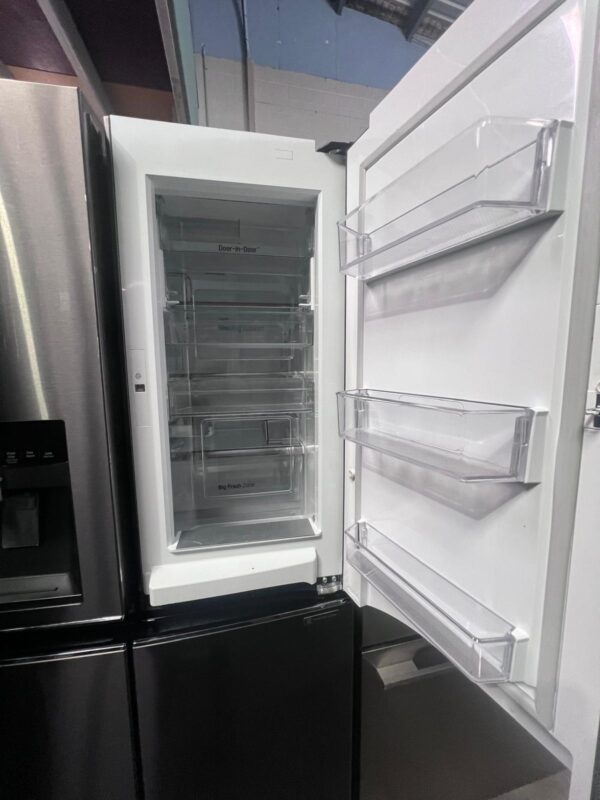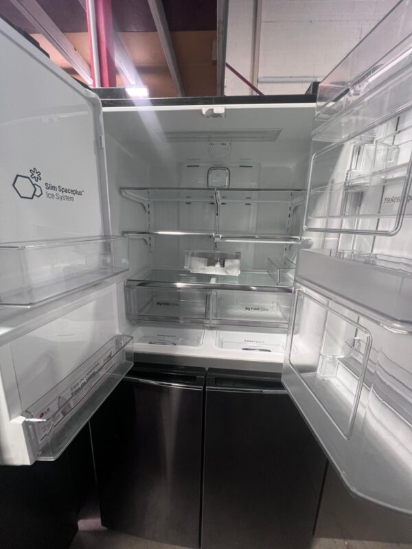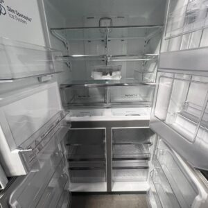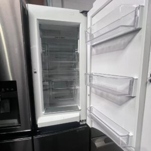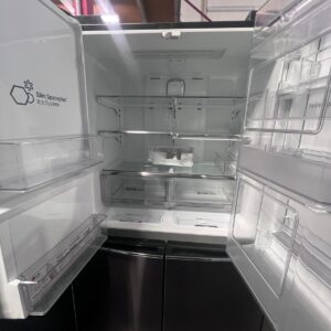French door design, hidden hinges, Door-In-Door®, LED interior lighting, 5 tempered glass shelves, 6 fixed door baskets, 2 crisper drawers, dairy corner, egg box, deodorizer, internal water filter, door open alarm, BioShield anti-bacterial seal, Smart Diagnosis™