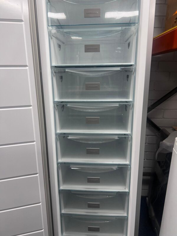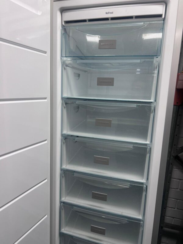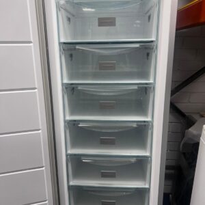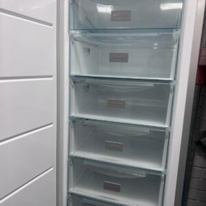 Features: Upright frost-free freezer design, electronic temperature control with MagicEye system, child-proof setting, door open alarm, 8 pullout drawers, SmartSteel door, aluminum handle, super frost function, LED lighting, pairs with SKEF4260 upright fridge