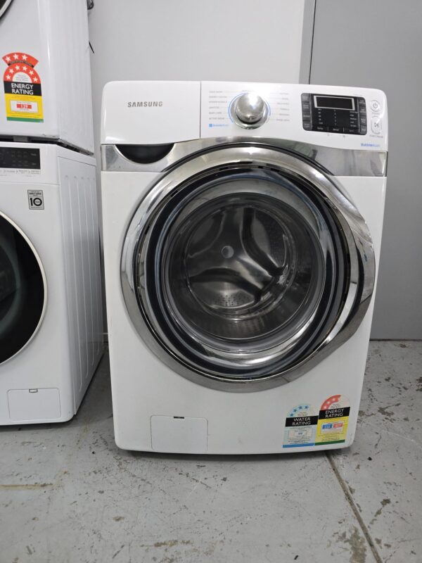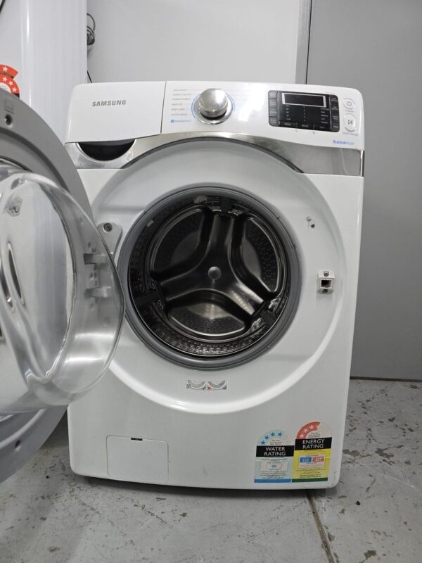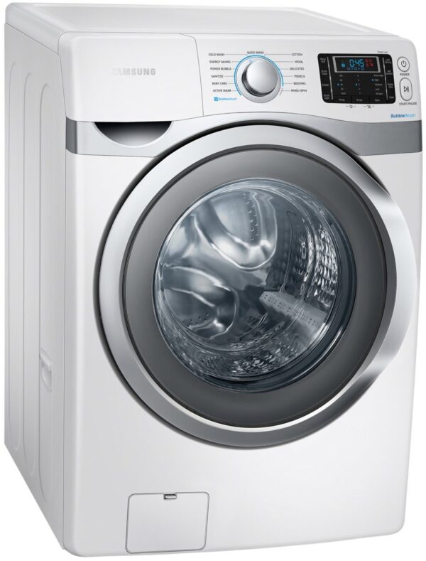 The washer uses Samsung’s digital inverter motor, which reduces friction and vibration during operation.