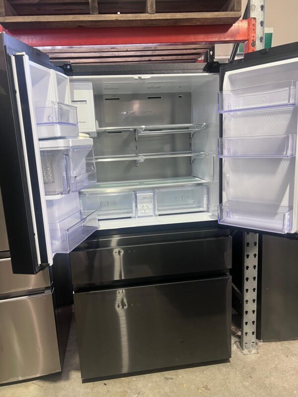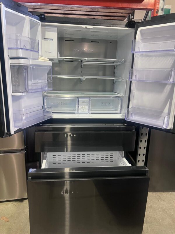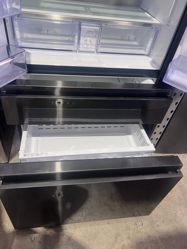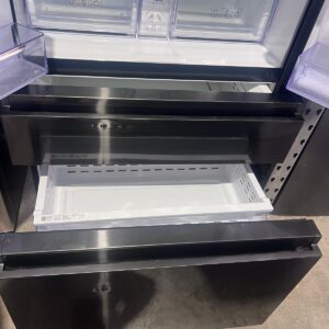 TYPE / FINISH: French Door Refrigerator, Matte Black Finish, Flat Door Design