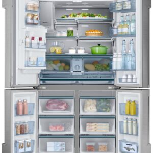 The Samsung SRF751CCSS 751L French Door Refrigerator offers massive storage, triple cooling technology, and a flexible fourth drawer. Featuring ice & water dispenser and smart cooling, it’s perfect for large households.
