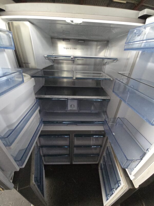 The Samsung SRF751CCSS 751L French Door Refrigerator offers massive storage, triple cooling technology, and a flexible fourth drawer. Featuring ice & water dispenser and smart cooling, it’s perfect for large households.
